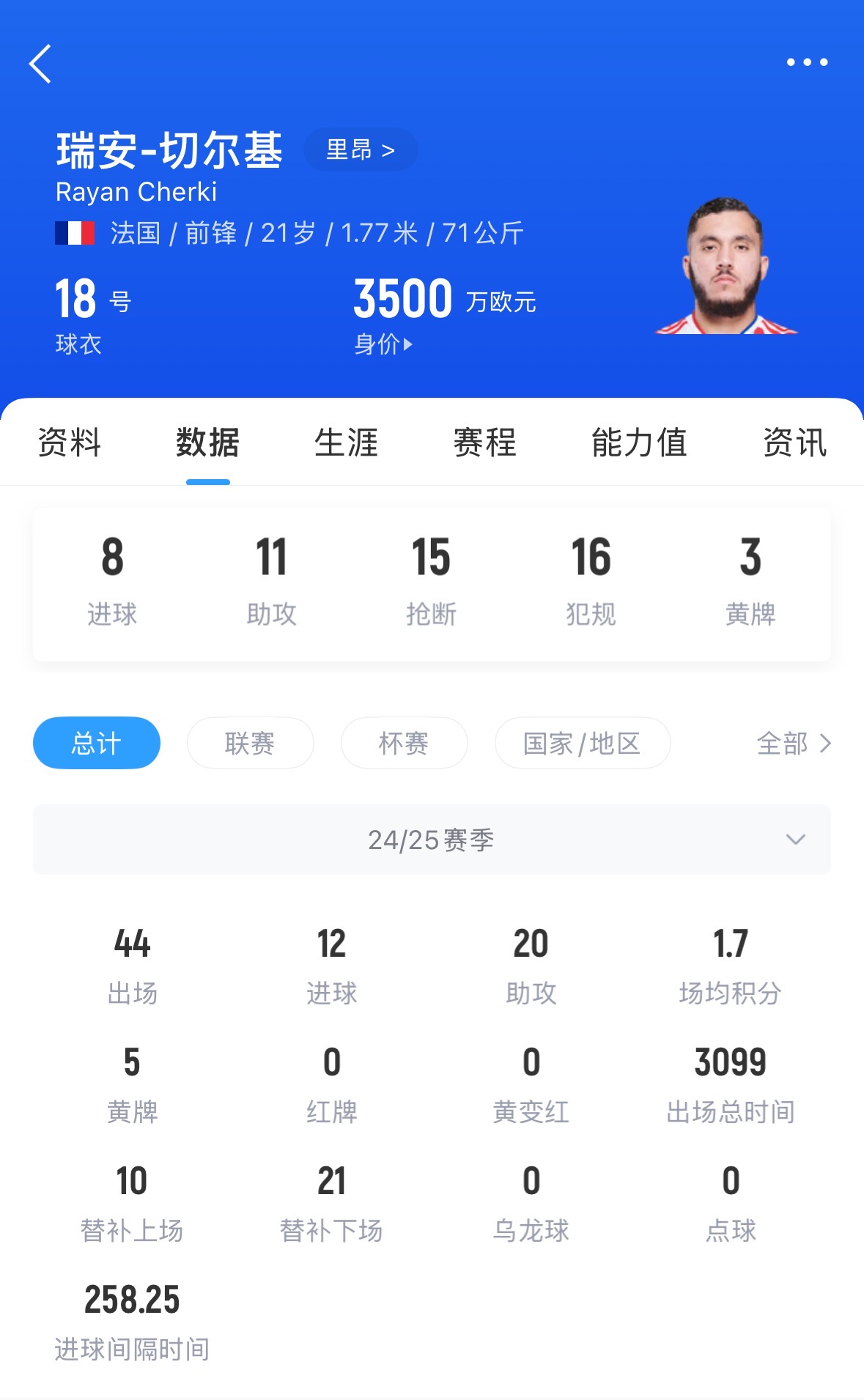 法國U21國腳切爾基本賽季表現出色,貢獻12球20助攻。