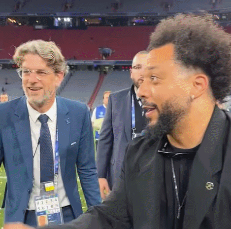 謙遜有實(shí)力!馬塞洛為杜埃頒發(fā)決賽MVP獎(jiǎng)杯,后者向前輩彎腰致意