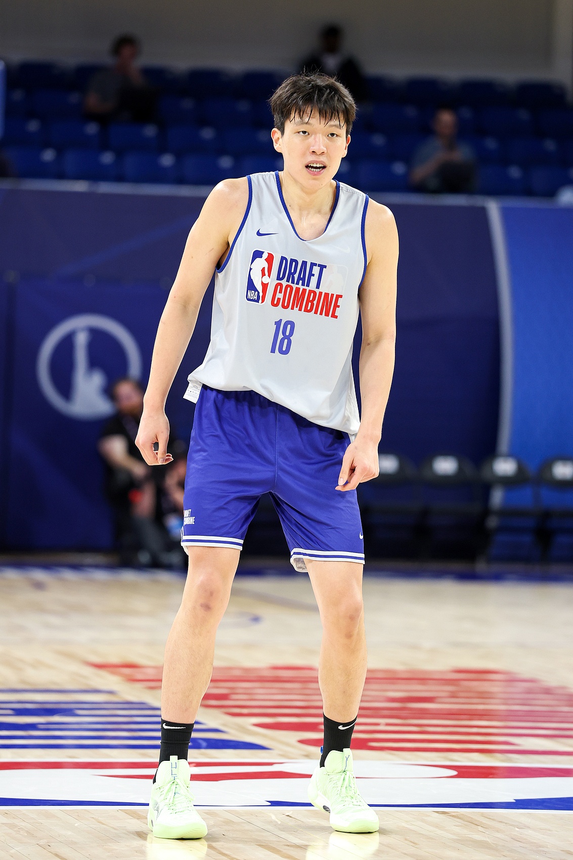 這位來自中國、身高7尺1寸(約2.16米)、體重253磅(約115公斤)的中鋒將在選秀第二輪當(dāng)晚迎來自己的20歲生日。他擁有令人著迷的體型(站立摸高9尺3寸/約2.82米,臂展近7尺3寸/約2.21米),同時(shí)兼具投籃手感和扎實(shí)的傳球能力,他的比賽還擁有著上升空間。