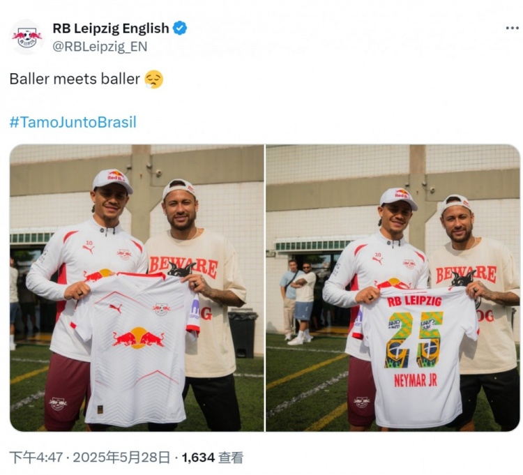 北京時間明天早晨,萊比錫將在友誼賽中對陣桑托斯,萊比錫攻擊手哈維-西蒙斯與內(nèi)馬爾賽前見面,哈維-西蒙斯將萊比錫球衣贈送給這位巴西球星,球衣上面印有內(nèi)馬爾的名字。