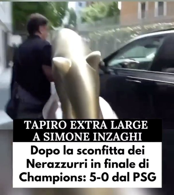 06月02日訊 24/25賽季歐冠決賽,國(guó)米0-5慘敗巴黎圣日耳曼。次日國(guó)米主教練西蒙尼-因扎吉收到了意大利國(guó)家電視臺(tái)Striscia La Notizia頒發(fā)的“超大金貘獎(jiǎng)”。