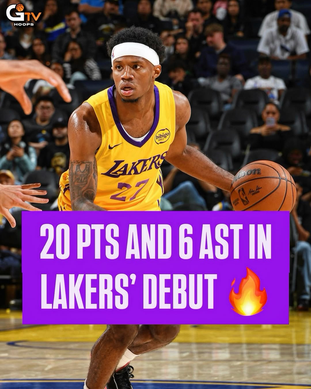 此役,湖人球員DJ-斯圖爾特上演湖人首秀,全場比賽出戰(zhàn)27分鐘,10投7中、三分球1中1,5罰全中得到20分2板6助1斷的數(shù)據(jù)。