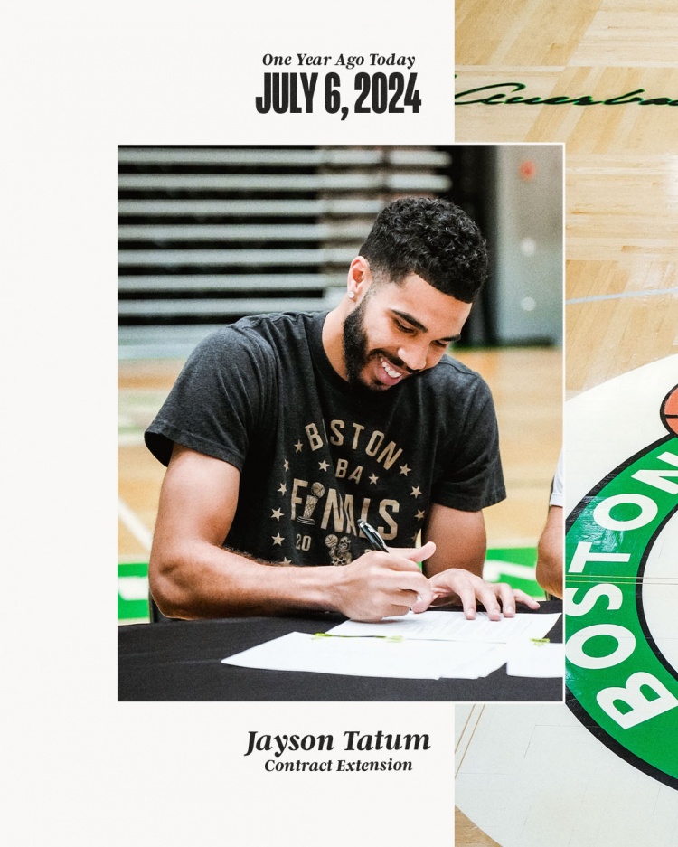 7月6日訊 凱爾特人官方更新社媒,曬出了一張塔圖姆在去年今日續(xù)約時的照片,并配文:“塔圖姆續(xù)約已經(jīng)過去一年了。 ??”