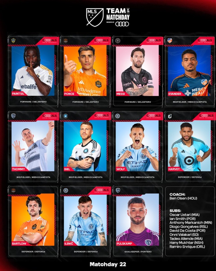 7月8日訊 美職聯(lián)官方公布第22比賽日最佳11人陣容,梅西領(lǐng)銜。