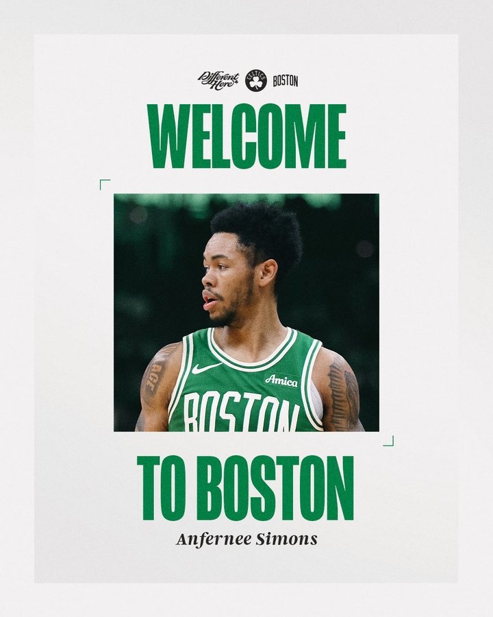 7月8日訊 今天,凱爾特人官方曬圖歡迎安芬尼-西蒙斯的加盟。