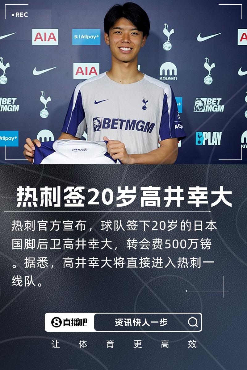 07月08日訊 官方消息,熱刺簽下20歲的日本后衛(wèi)高井幸大,他將在獲得國際轉會證明和工作證后正式加盟。據(jù)媒體此前報道,這筆交易的轉會費為500萬英鎊。