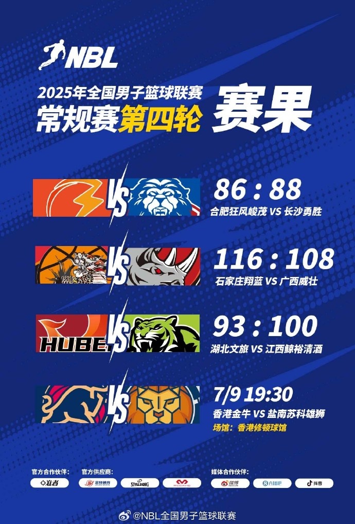 【戰(zhàn)報】2025年NBL常規(guī)賽第四輪今日三場戰(zhàn)罷,長沙勇勝加時鏖戰(zhàn)勝出,廣西湖北仍未嘗勝績。