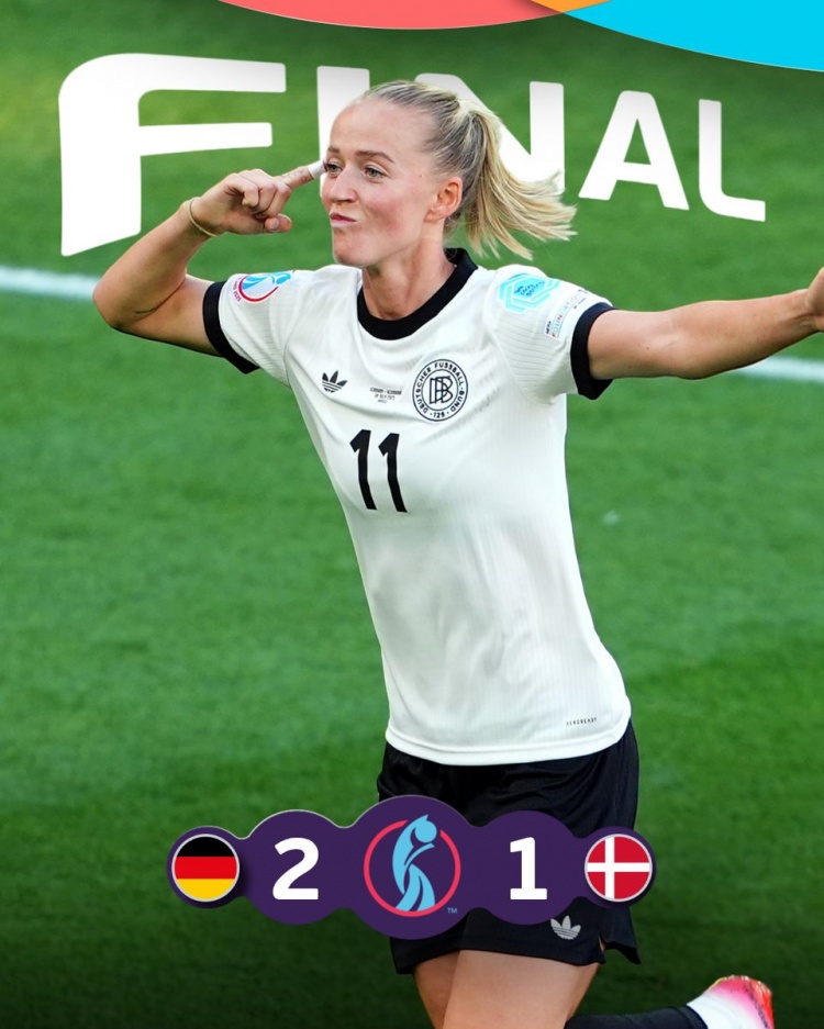 范斯加爾德在第26分鐘為丹麥女足先進一球,努斯肯第56分鐘點射破門將場上比分扳平,第66分鐘舒勒進球幫助德國女足將比分反超。