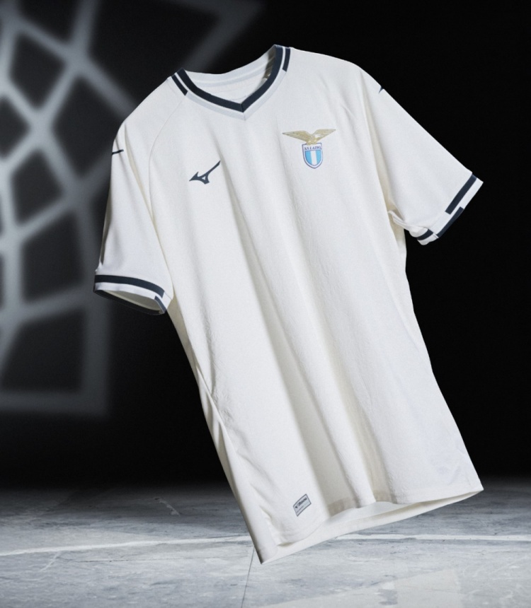 拉齊奧2025-26賽季的球衣由美津濃設(shè)計(jì)生產(chǎn),主場(chǎng)球衣延續(xù)經(jīng)典的天藍(lán)色基調(diào),通過(guò)壓花工藝打造的幾何圖案向米開(kāi)朗基羅設(shè)計(jì)的卡比托利歐廣場(chǎng)地磚藝術(shù)致敬,彰顯拉齊奧俱樂(lè)部的身份標(biāo)識(shí)。立體浮雕隊(duì)徽位于左胸心臟位置,右側(cè)則是美津濃品牌標(biāo)志。純白圓領(lǐng)后頸處印有“1900年1月9日”成立日期,搭配同色系羅紋袖口,全套裝備包含白色短褲與飾有天藍(lán)色細(xì)節(jié)的白色球襪。