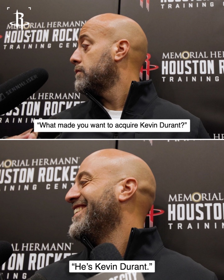 “是什么原因促使你想要去得到凱文-杜蘭特?”