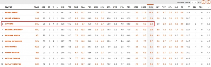 本月籃板前三:里斯、史蒂文斯(前隊友)、李月汝