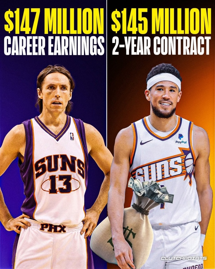離大譜??納什生涯一共才掙了1.47億 布克2年就1.45億