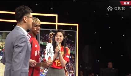 亞馬爾做客天下足球收到折扇禮物,女球迷教亞馬爾用中文念小孩哥
