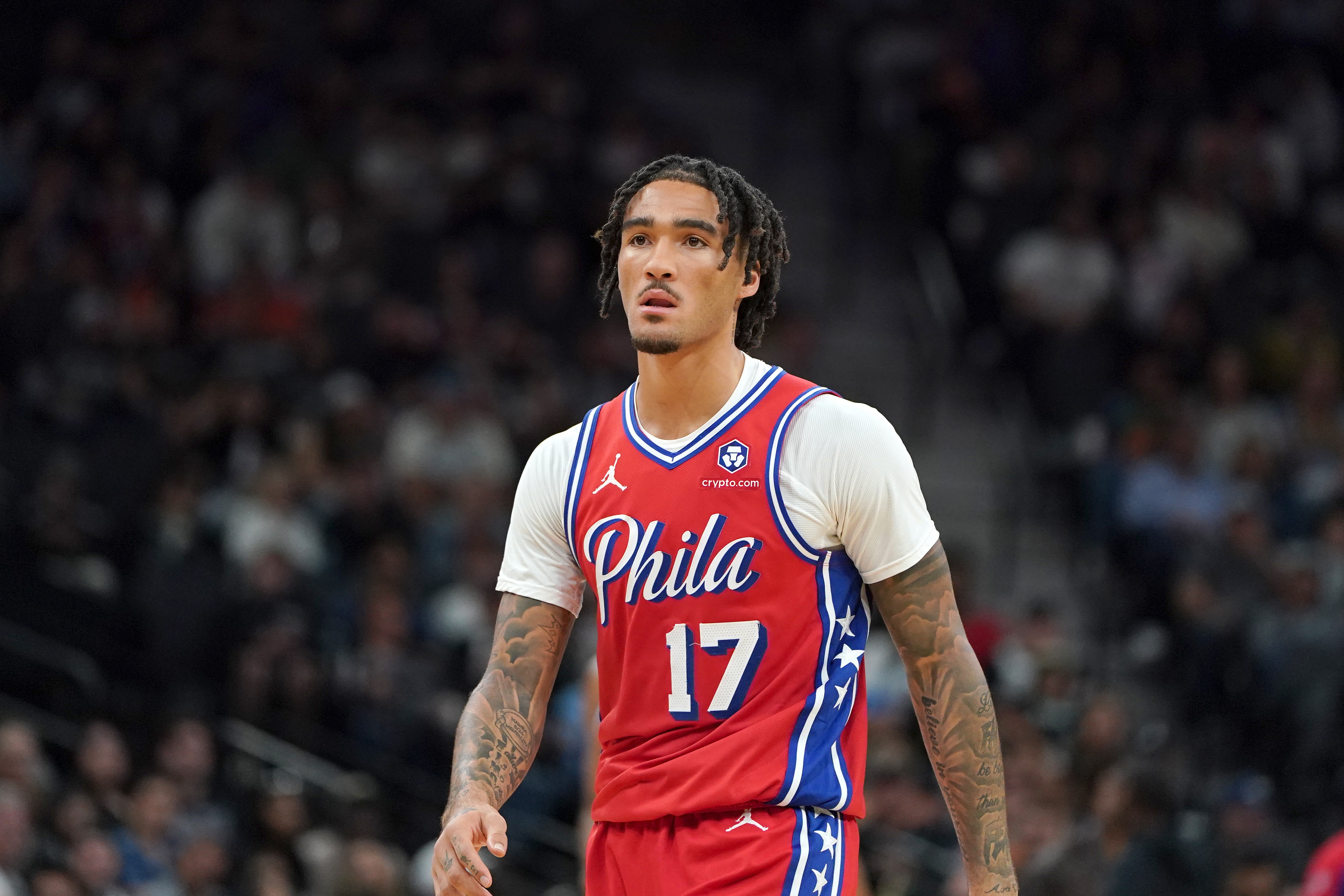 上半場,76人后衛(wèi)席菲諾表現(xiàn)不佳,打了11分鐘3投0中沒有得分,拿到2籃板出現(xiàn)3犯規(guī),正負值-21。