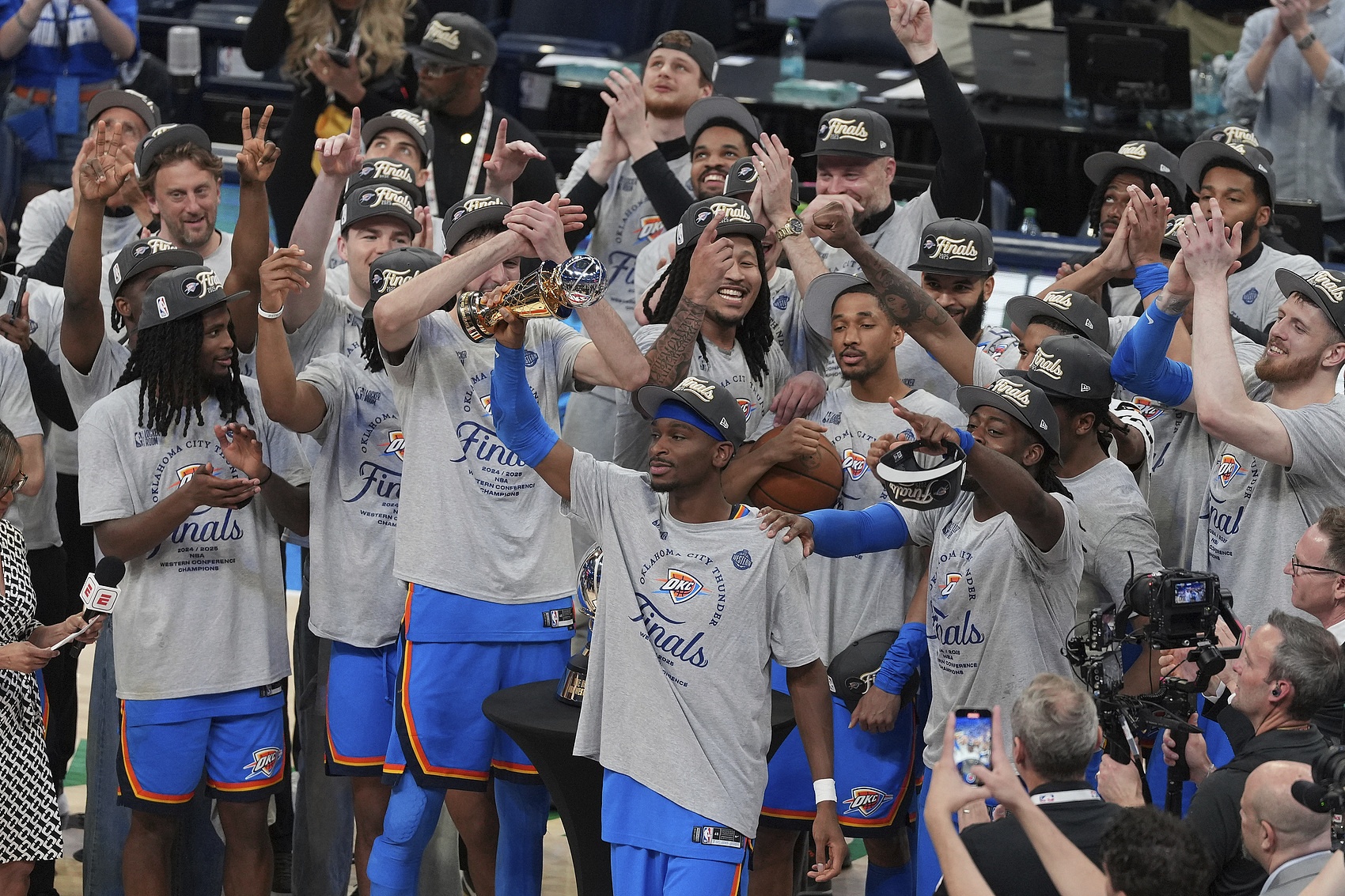 這支青年軍連續(xù)兩年稱霸西部常規(guī)賽,并在今年晉級NBA總決賽。無論最終能否奪冠,今夏的首要任務(wù)都是用大合同續(xù)約杰倫-威廉姆斯和霍姆格倫,否則可能破壞精心打造的化學反應(yīng)。在這個基本前提下(并非“艱難決定”),雷霆面臨陣容飽和問題:現(xiàn)有合同球員+兩個首輪簽+較高順位次輪簽。除非放棄阿杰伊-米切爾和杰林-威廉姆斯(球隊選項),或進行交易,否則解決方案可能是將今年的首輪簽置換為未來的首輪簽。