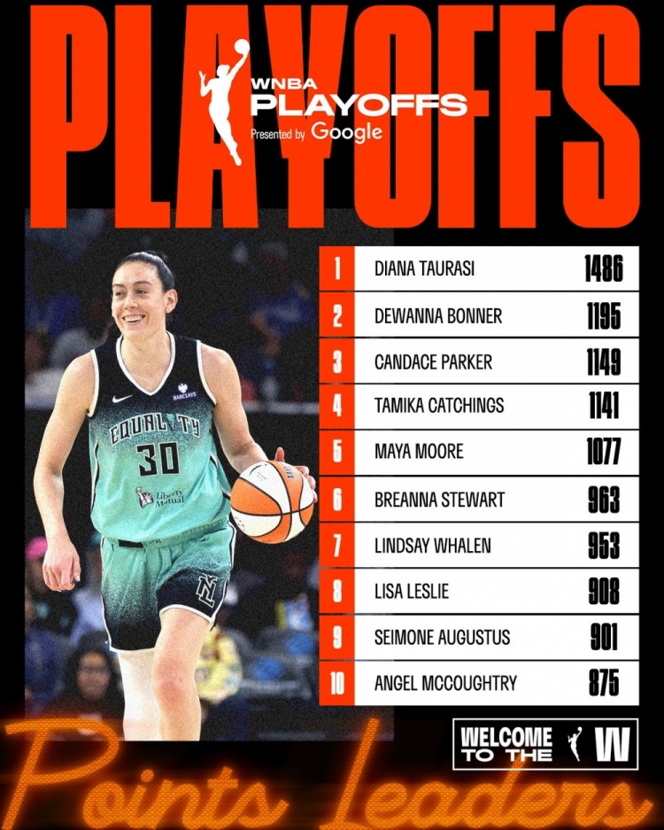 在比賽的上半場,斯圖爾特超越了林賽-惠倫,以963分升至 WNBA 季后賽歷史得分榜第6位 。