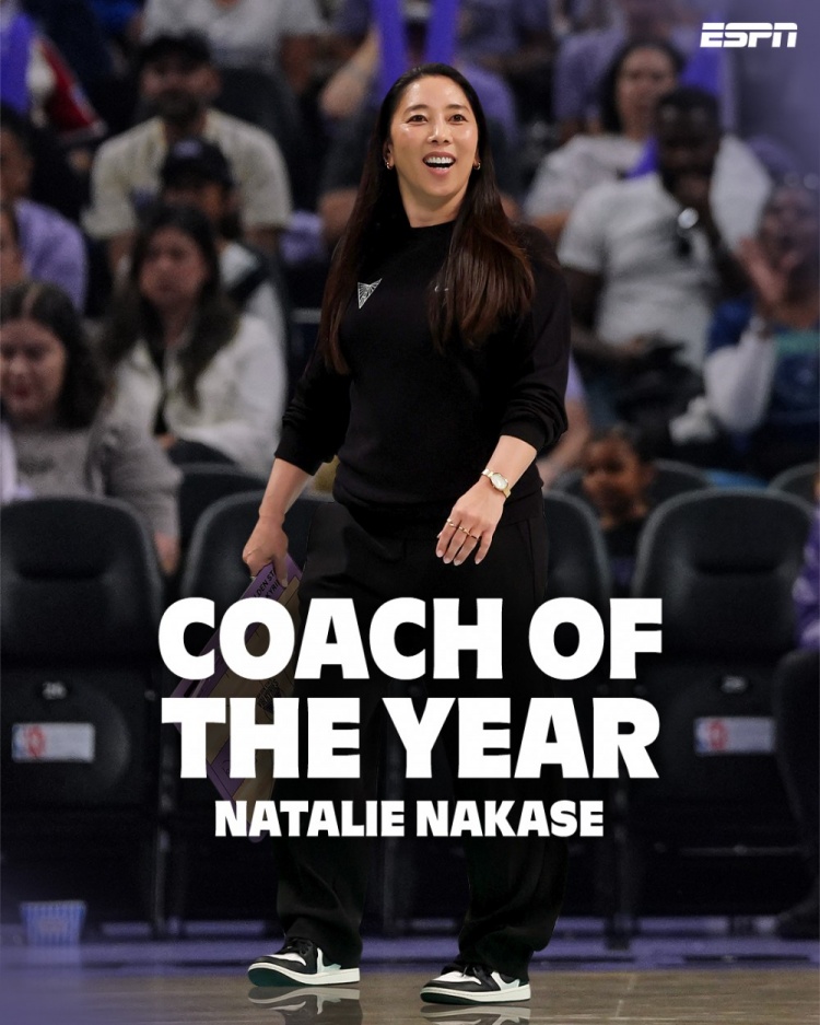 WNBA新軍金州女武神主教練娜塔莉-中瀨當(dāng)選本賽季最佳教練,她就此創(chuàng)造了WNBA新紀(jì)錄,成為首位在擴(kuò)張球隊(duì)首個(gè)賽季當(dāng)選年度最佳教練的主帥。本賽季金州女武神建隊(duì)第一年就打出了23勝21負(fù)的戰(zhàn)績,以第八名的身份晉級(jí)季后賽。