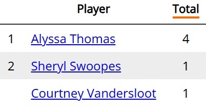 據(jù)統(tǒng)計(jì),這是托馬斯季后賽生涯第5次三雙,而WNBA歷史其余人合計(jì)2次。