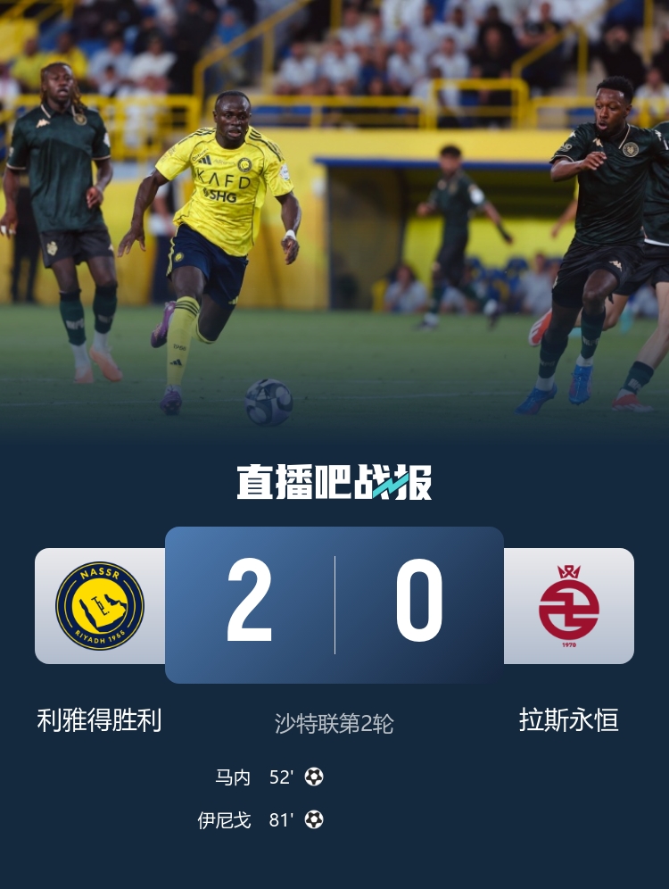 9月15日訊 北京時間2:00,沙特聯(lián)第2輪利雅得勝利vs拉斯永恒。上半場,C羅錯失單刀機(jī)會。下半場,馬內(nèi)破門幫助利雅得勝利取得領(lǐng)先;科曼錯失空門良機(jī)!伊尼戈頭球破門,隨后又送出一粒點(diǎn)球,納賈爾神勇?lián)潼c(diǎn)。最終,利雅得勝利2-0擊敗拉斯永恒,新賽季開局兩連勝。