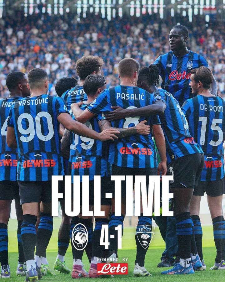 09月15日訊 意甲第3輪,亞特蘭大4-1擊敗萊切,終結(jié)2連平,暫時(shí)1勝2平排名意甲第7。
