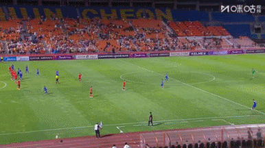 09月16日訊 申花vs江原上半場補時最后時刻,高天意快發(fā)任意球,特謝拉帶球突入禁區(qū)內(nèi)切兜射得手,申花1-0領(lǐng)先江原。
