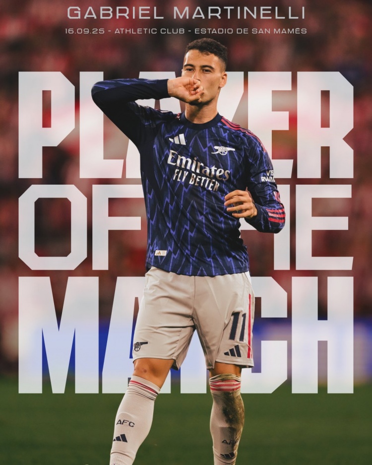 此役馬丁內(nèi)利71分鐘為阿森納替補(bǔ)出場(chǎng),貢獻(xiàn)1傳1射,他當(dāng)選本場(chǎng)比賽最佳球員。