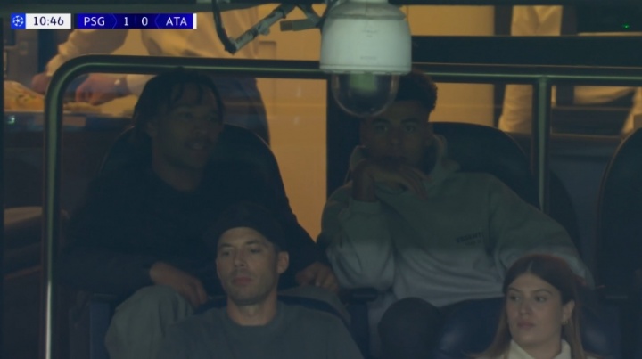 比賽轉(zhuǎn)播鏡頭給到了看臺上觀戰(zhàn)的杜埃,他在國際比賽日中受傷,缺席了本場巴黎的大名單。
