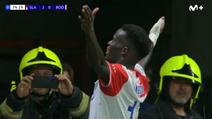 布拉格2-0領(lǐng)先博德閃耀!隨后慶祝過(guò)程中布拉格主場(chǎng)的消防員也忍不住為這位梅開(kāi)二度的功臣拍照!