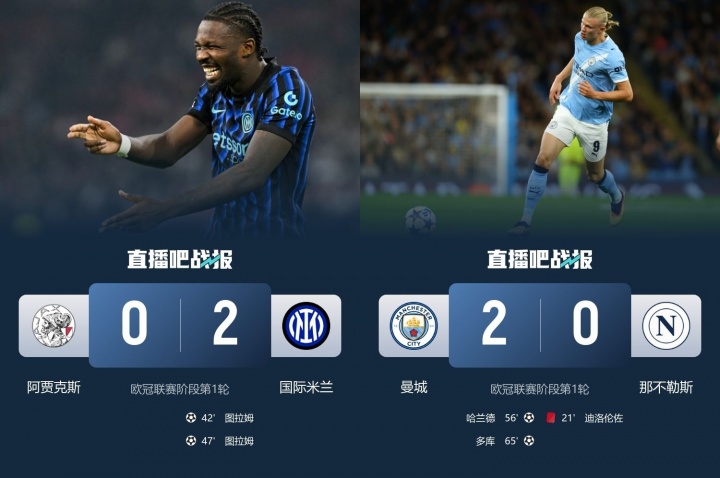 其中唯一贏球的國米2-0擊敗阿賈克斯。輸球的兩場分別是亞特蘭大0-4慘敗巴黎,那不勒斯0-2不敵曼城。打平的比賽則是尤文4-4多特,斑馬軍團(tuán)補(bǔ)時轟入2球,上演絕平。