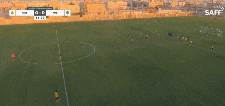 本場比賽利雅得勝利U15對(duì)陣吉達(dá)國民U15,第67分鐘,迷你羅任意球直接破門。