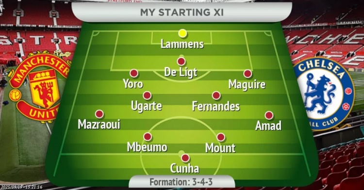 9月20日訊 9月21日0點(diǎn)30分,曼聯(lián)將坐鎮(zhèn)主場(chǎng)對(duì)陣切爾西。賽前,《曼徹斯特晚報(bào)》預(yù)測(cè)本場(chǎng)比賽曼聯(lián)首發(fā)名單,姆伯莫、庫(kù)尼亞、芒特為前場(chǎng)三叉戟,陣型343。