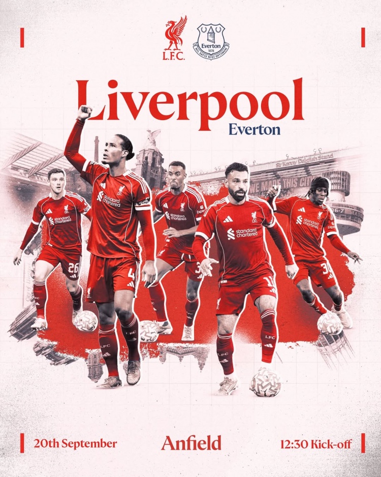 利物浦發(fā)布德比戰(zhàn)海報(bào):范迪克、薩拉赫、羅伯遜、弗林蓬出鏡