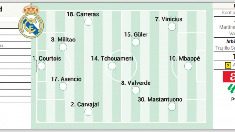 阿隆索最初計劃僅調(diào)整鋒線,維尼修斯將重回首發(fā)。同時將迎來貝林厄姆和卡馬文加兩大備受期待的變數(shù)。雖然兩人都已進入對陣馬賽的大名單,但教練認(rèn)為當(dāng)時并非合適的登場時機,而本場計劃在下半場逐步讓他們替補登場。