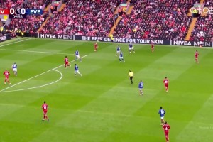 第58分鐘,格拉利什左路擺脫后傳中送到后點,恩迪亞耶順勢將球停給蓋耶,后者迎球爆射打進,埃弗頓1-2利物浦?!?/strong>