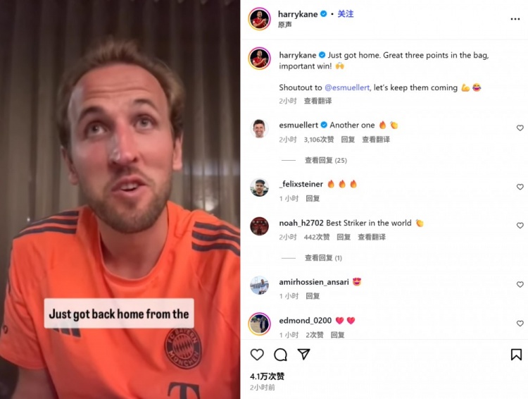 他也在賽后通過社媒慶祝勝利,并配文:“剛剛回家。精彩三分入袋,一場重要的勝利!回應(yīng)穆勒,讓我們期待更多(帽子戲法)到來?!蹦吕找铂F(xiàn)身評論區(qū)并驚嘆:“又一個(gè)(帽子戲法)!”