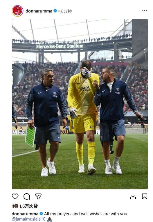 07月06日訊 多納魯馬賽后在社媒發(fā)文,為穆西亞拉祈福。