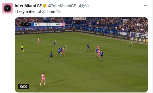 07月06日訊 美職聯(lián)邁阿密?chē)?guó)際vs蒙特利爾沖擊,梅西奔襲半場(chǎng)破門(mén),邁阿密官方曬進(jìn)球視頻:The greatest of all time(歷史最佳)??。