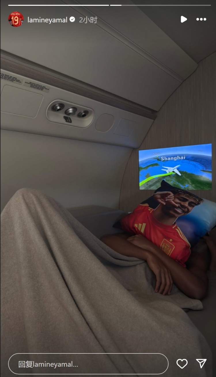 亞馬爾社媒曬出乘坐飛機(jī)前往上海照片,他在飛機(jī)上小憩,臉上蓋著自己形象的抱枕,據(jù)悉現(xiàn)在他已經(jīng)抵達(dá)上海虹橋機(jī)場。