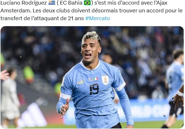 7月11日訊 據(jù)記者Lo?c Tanzi報道,巴伊亞前鋒盧西亞諾-羅德里格斯已經(jīng)和阿賈克斯達(dá)成協(xié)議,接下來兩家俱樂部將會就烏拉圭人轉(zhuǎn)會進(jìn)行談判。