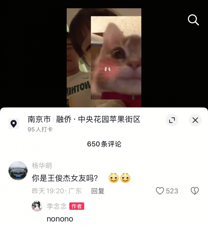 網(wǎng)友在評論區(qū)發(fā)問:“你是王俊杰女友嗎?”,@李念念回復(fù):“nonono”