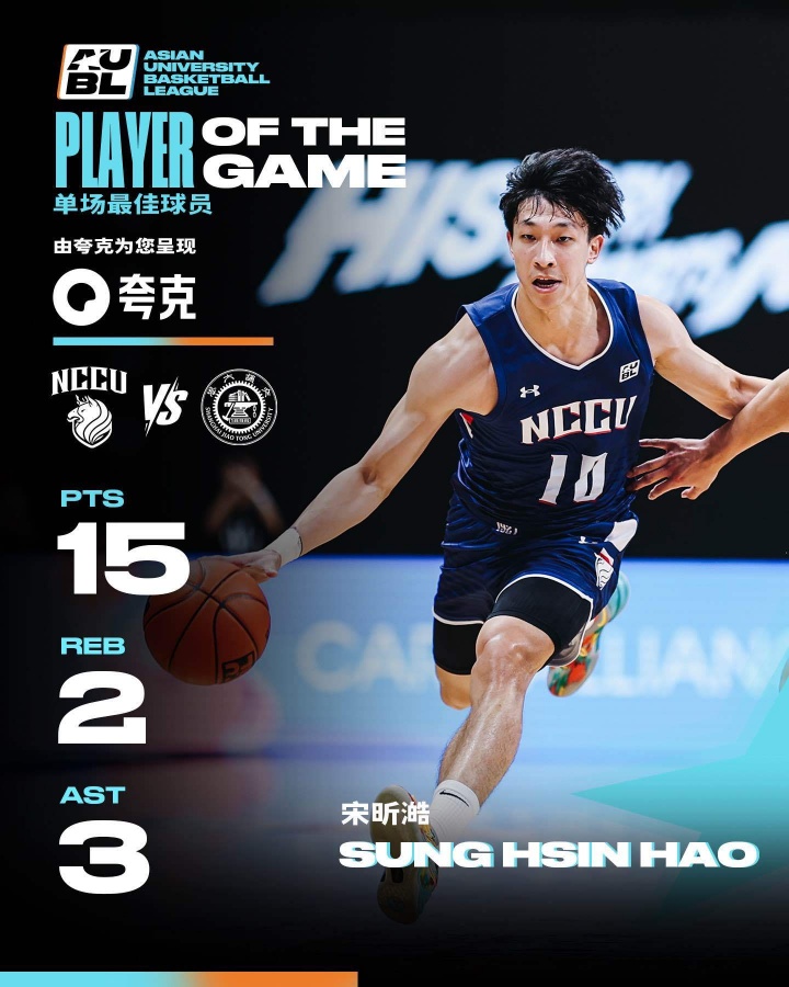 此役,政治大學(xué)6人得分上雙,其中后衛(wèi)宋昕澔9投6中拿下15分2籃板3助攻1搶斷,榮膺本場(chǎng)最佳球員;中鋒波波卡拿下14分12籃板2蓋帽。