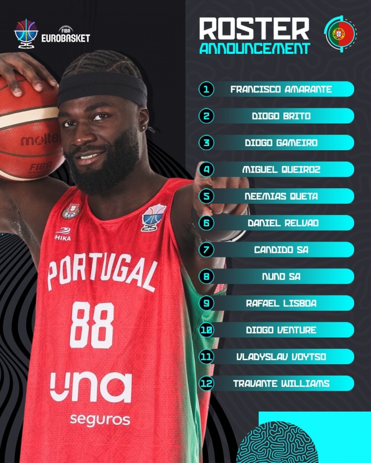 8月22日訊 今日,歐錦賽官方公布了葡萄牙男籃國家隊12人大名單。