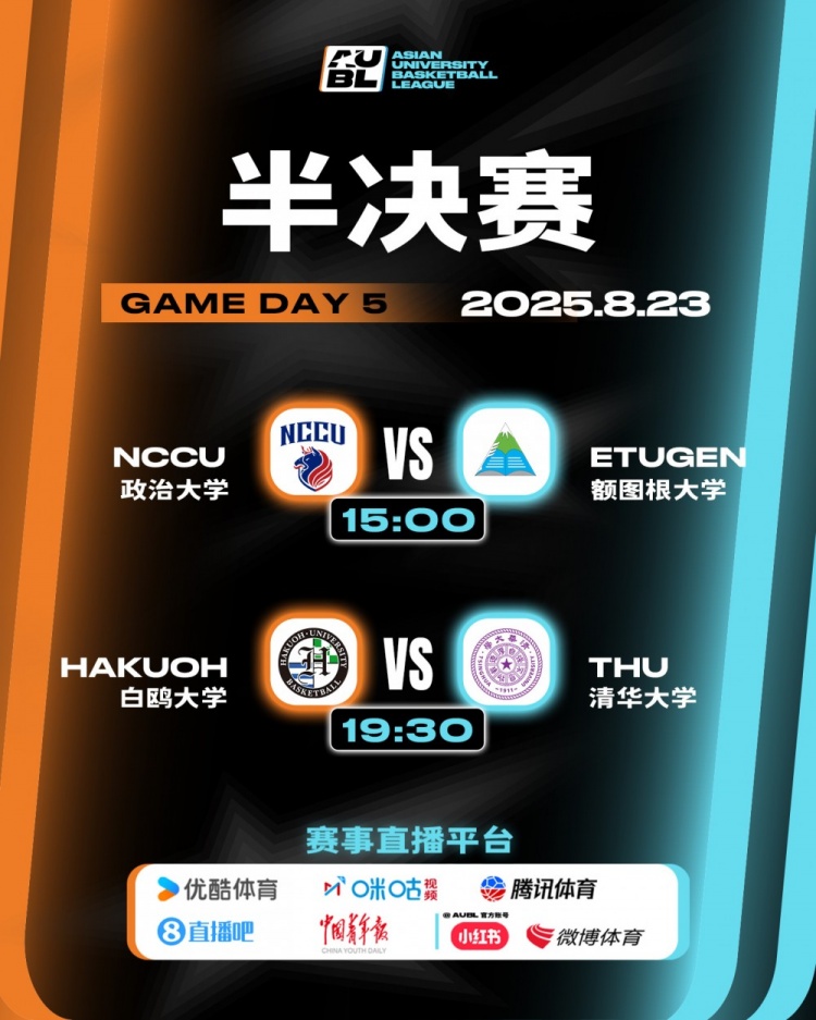 AUBL亞洲大學(xué)生籃球聯(lián)賽半決賽對(duì)陣出爐 清華大學(xué)vs日本白鷗大學(xué)