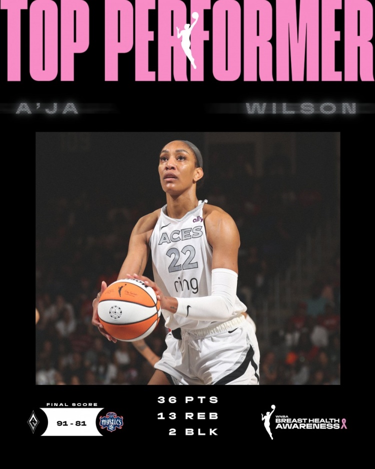 根據(jù)數(shù)據(jù)統(tǒng)計(jì),這是阿賈-威爾遜本賽季第9次砍下30+10,她超越去年的自己(8次),成為WNBA歷史上單賽季30+10板場(chǎng)次最多的球員。