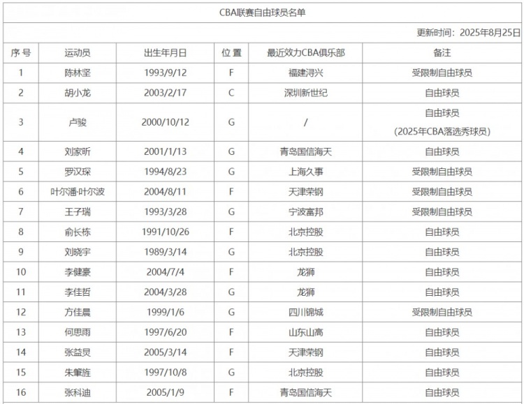 二、自2025年5月21日起,CBA聯(lián)賽自由球員名單將只保留2025年5月21日及以后申請進入的球員,2025年5月21日以前申請并進入過自由球員名單中的球員可根據(jù)規(guī)定及要求向CBA公司提交相關(guān)材料(發(fā)送至郵箱:register@cbaleague.com)繼續(xù)申請進入自由球員名單。
