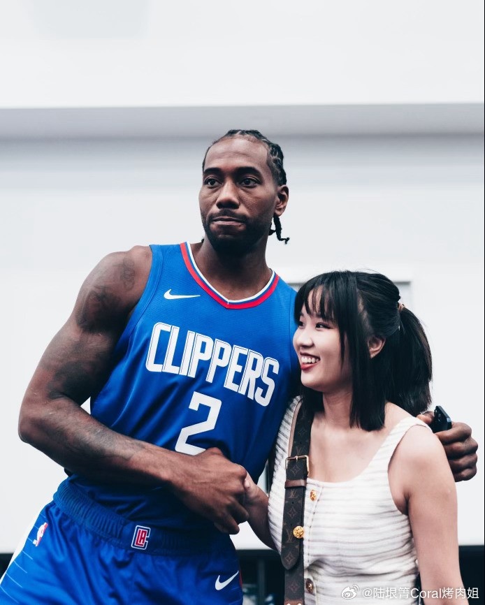 前記者、萊昂納德中方經(jīng)紀(jì)人“烤肉姐”陸垠箐曬出與小卡的合照,并寫道:“中國(guó)功夫卡 ??”