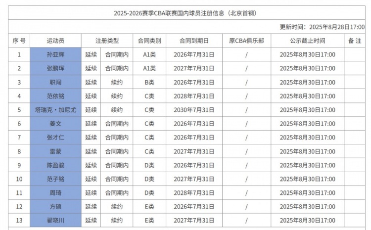 8月28日訊 CBA官網(wǎng)更新了北京男籃新賽季的國內(nèi)球員注冊信息,北京共注冊了13人。