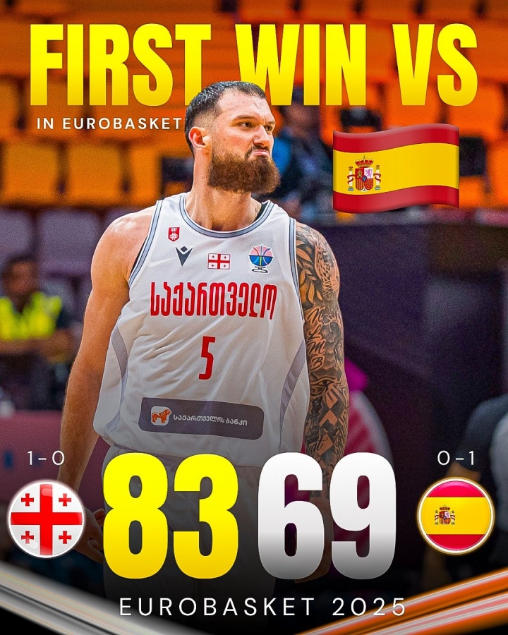 8月28日訊 男籃歐錦賽小組賽,格魯吉亞83-69戰(zhàn)勝西班牙。