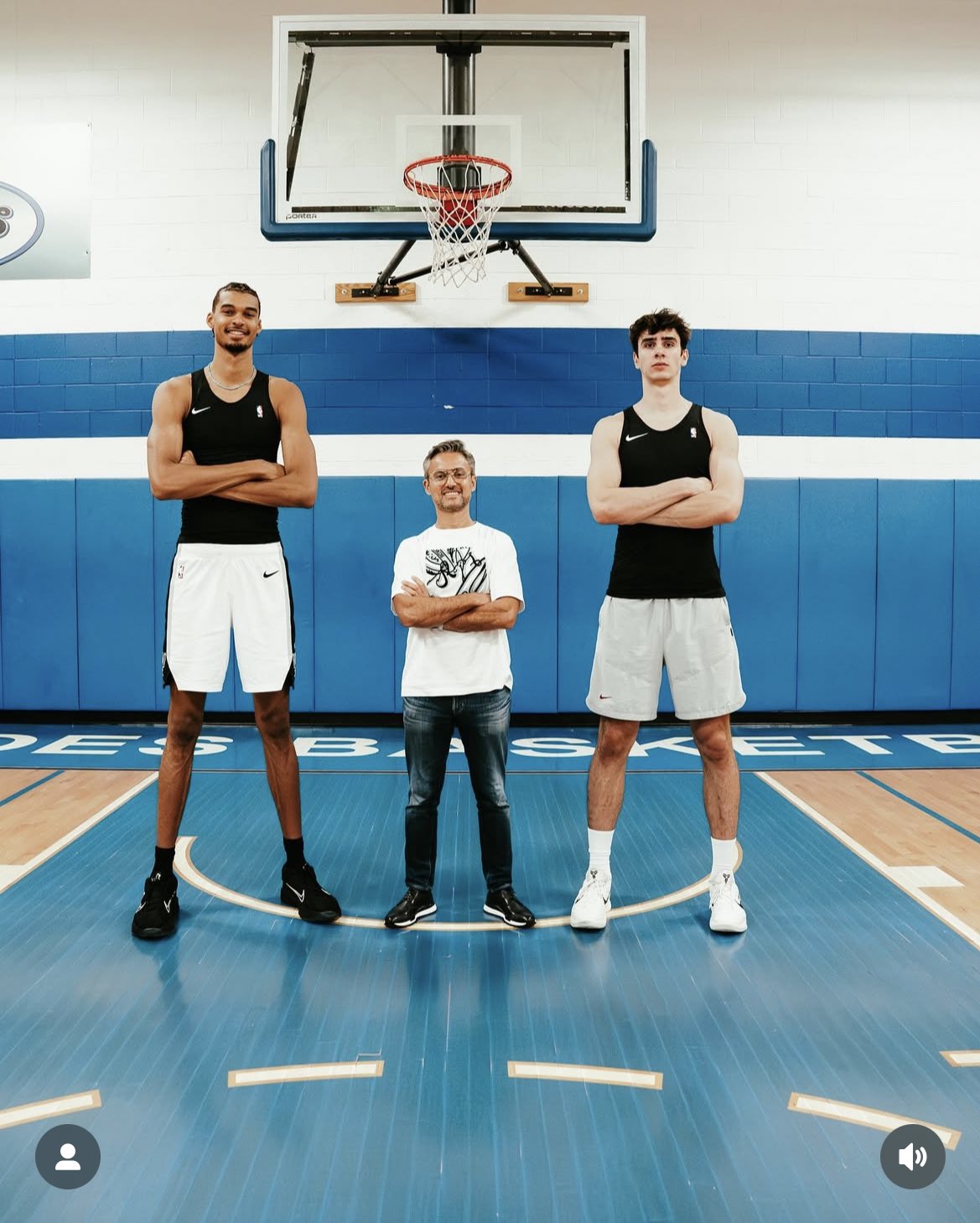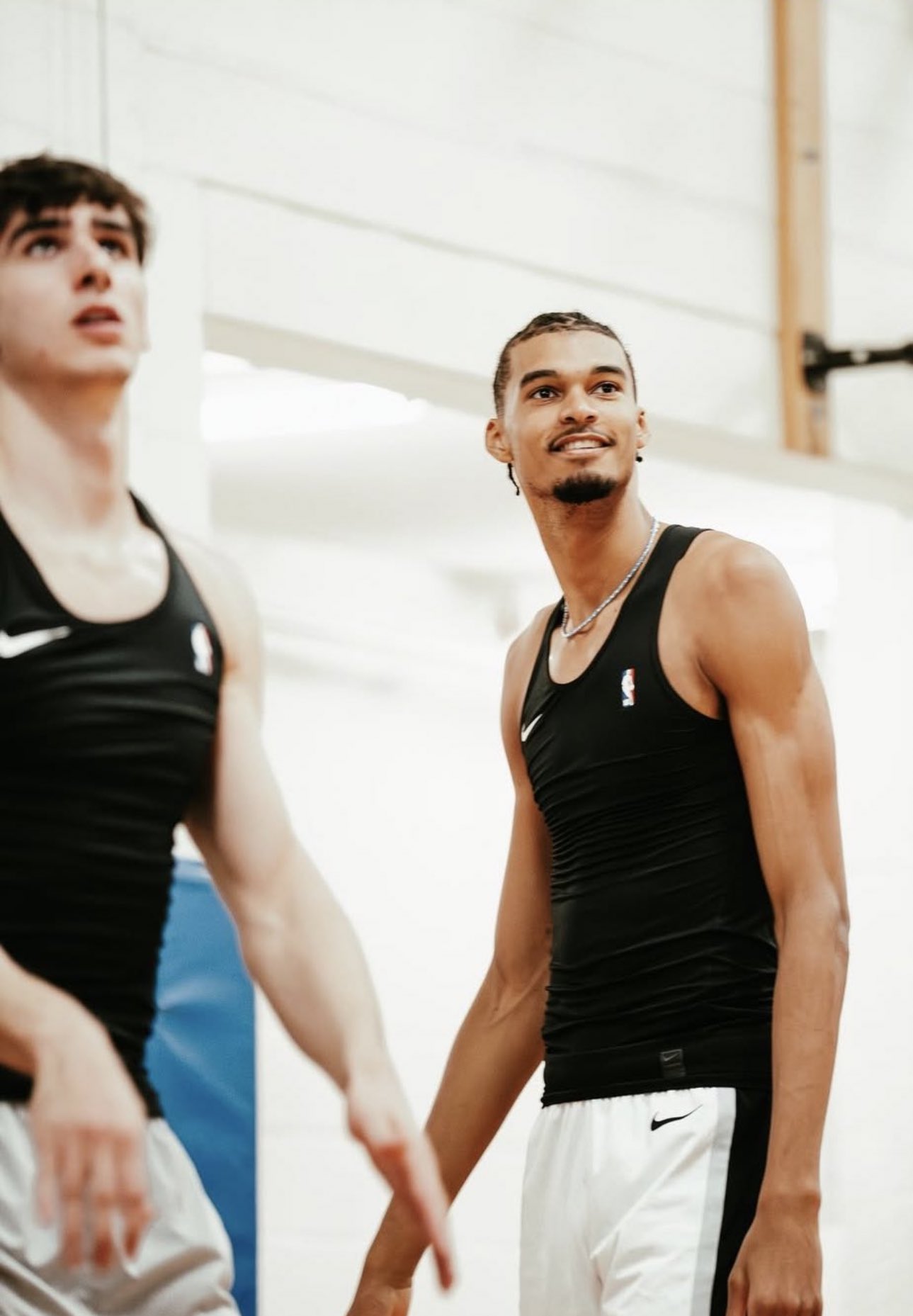文班和Maxime Raynaud一同訓(xùn)練,后者是今年參選的新秀中鋒
