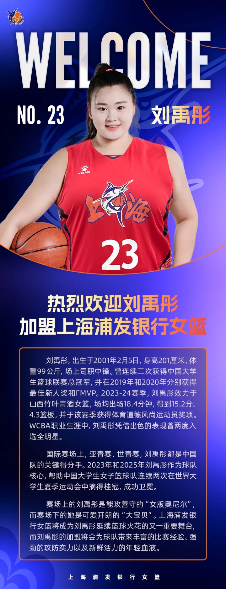 09月05日訊 上海浦發(fā)銀行女籃官方宣布,“大寶貝”劉禹彤正式加盟球隊!